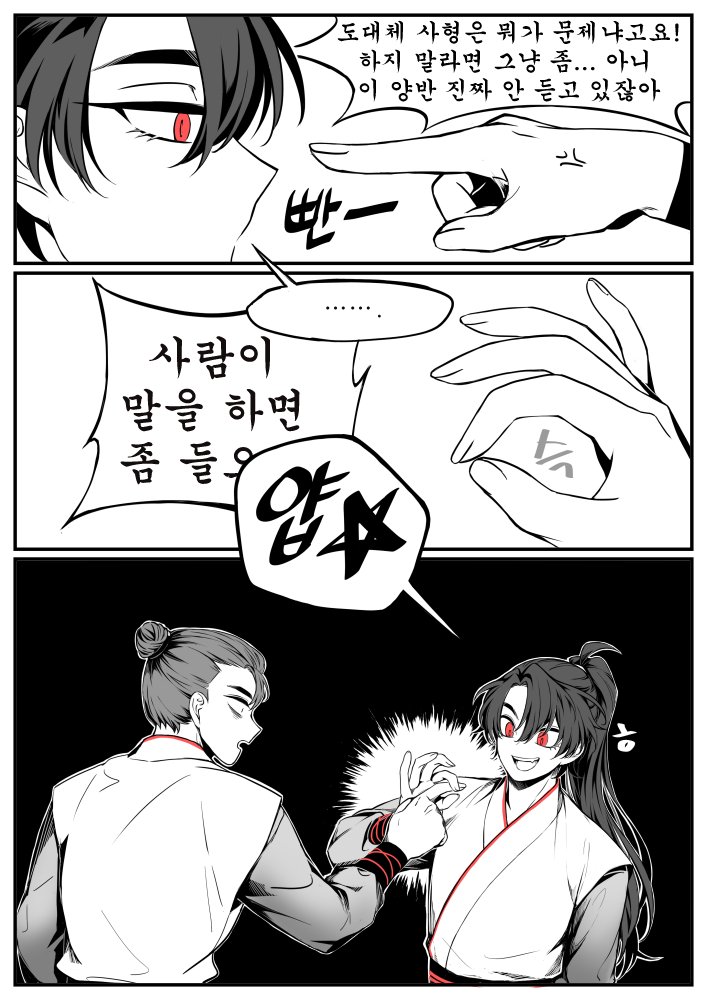 슾하이더맨 그 짤 패러디 김청명 이 시끼도 다른 놈들 둘이 싸우면 신나서 사형한테 일렀을 것 같음ㅋㅋㅋㅋ 지가 사고 칠 때마다 다들 사형한테 일러댔으니까 이때싶 복수하기
