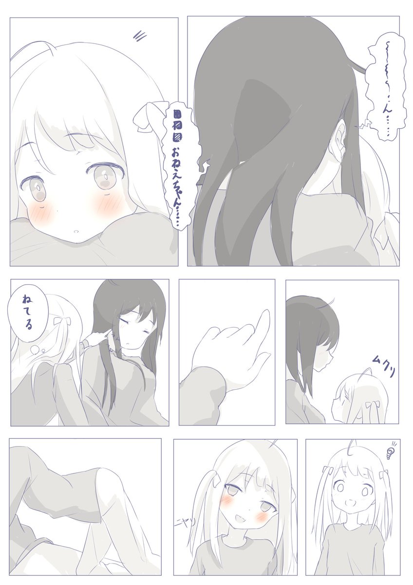 「ひを姉、おねえちゃんってなあに?」 ※ひをり(ひを姉)=濃い髪のこの女の人 #創作百合 #オリジナル漫画