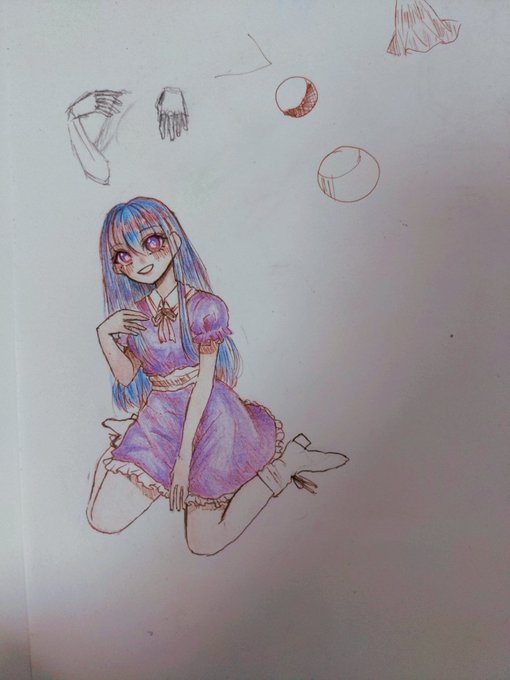 今日のお絵描き!なんか暗い🤣 やっぱ足と靴苦手…🥺 #イラスト #絵描きさんと繋がりたい #イラスト練習 #オリジナルイラスト #色鉛筆 #アナログ絵 #フォロバ100