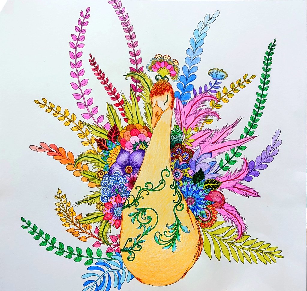0 1 久しぶりに塗り絵した(´ω`) ずっと途中だったのをやっと塗った(笑) #お家時間 #塗り絵 #大人の塗り絵 #色鉛筆 21/08/17 08:22