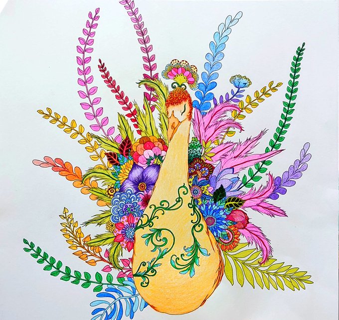 久しぶりに塗り絵した(´ω`) ずっと途中だったのをやっと塗った(笑) #お家時間 #塗り絵 #大人の塗り絵 #色鉛筆