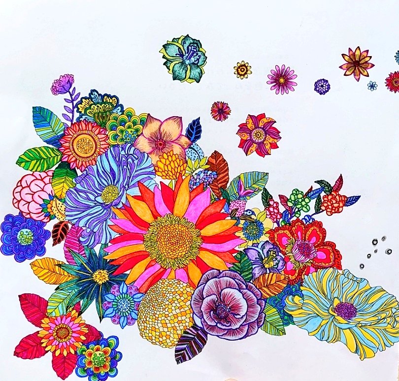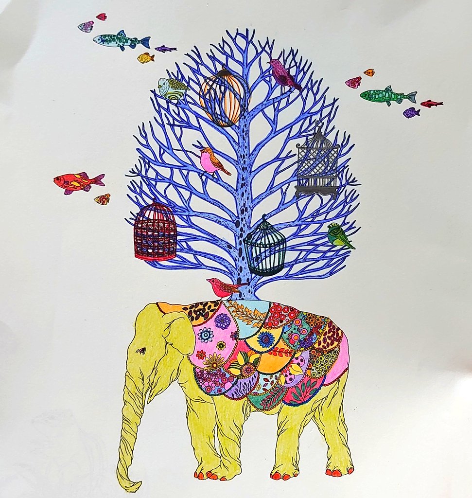 お花…細かい…大変… 楽しかった!!(*^^)v ぞうさんは、お手軽にできて、 これはこれで達成感あった(笑) #お家時間 #大人の塗り絵 #塗り絵 #色鉛筆 #coloringbook