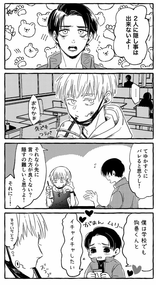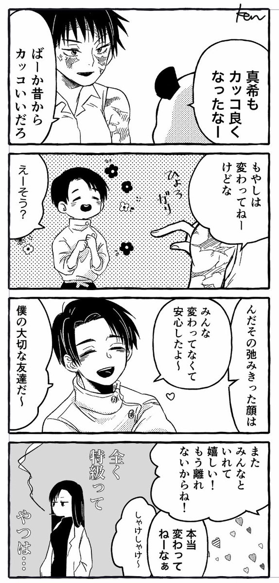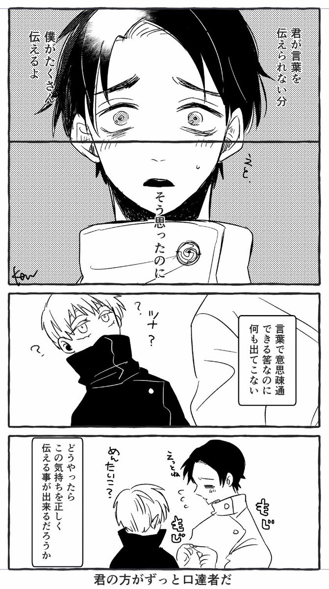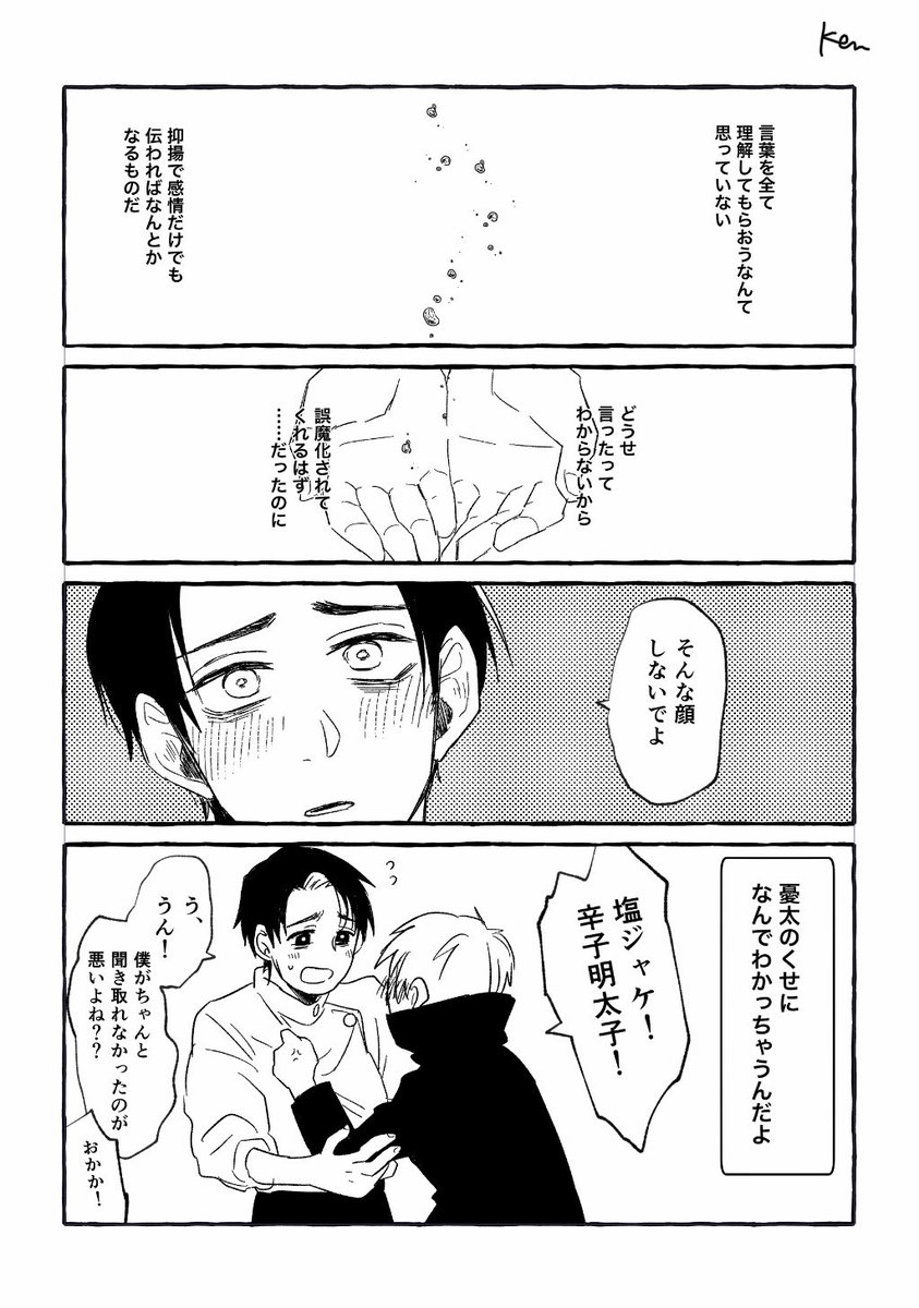 0 8 こっちには上げてなかった新刊の中身。20ページくらい新しく描きました! あと缶バラリーの絵ってCP絵じゃなきゃ駄目だって気付いたので没にしたやつ 23/04/28 12:42