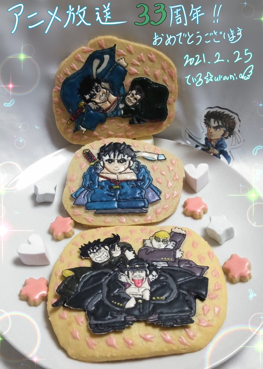 🎉🎂Happy Birthday 🎂🎉 剣桃太郎 宮下あきら先生💐 今年は先生デビュー作品 勝負師ケン🤚ちゃん、 サガさん♠️ギャンブルキャラ+ そして、剣桃太郎🍑の アイシングクッキーを制作しました✨ それぞれグーチョキパー✊✌✋の 手になってます #剣桃太郎誕生祭 #剣桃太郎誕生祭2021 #男塾 #宮下あきら twitter.com/teil0224/statu…