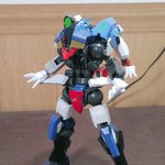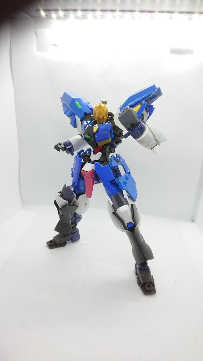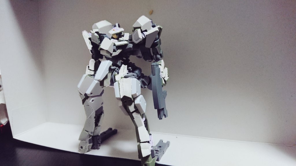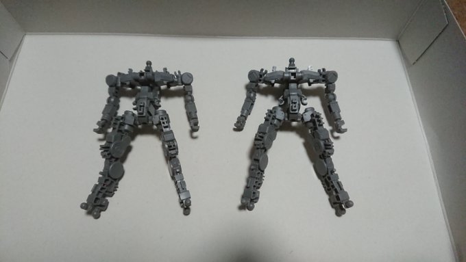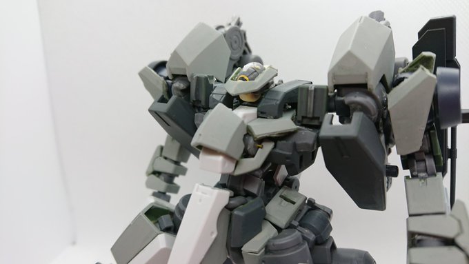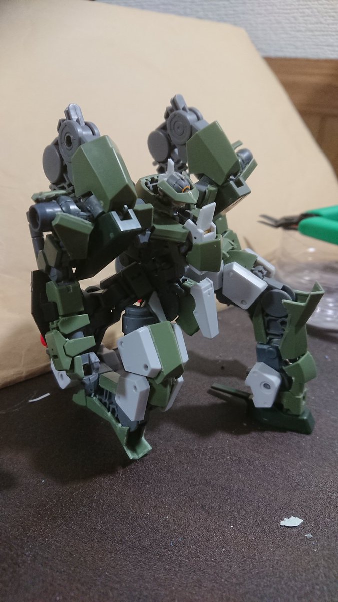 とりあえず完成! その名も「No-SiDe」です。 ACVDのメカデザインに大いに影響を受け、グレイズ二機+αで完成したオリロボです! #ガンプラ #オリロボ #ガンダムを使ってガンダムじゃないものを作る