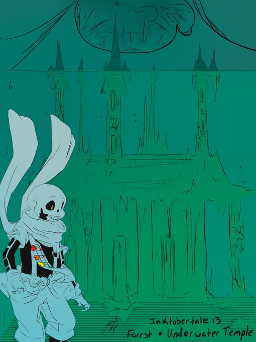 Inktobertale 13: Forest and Underwater Temple A LITTLE LATE IM SORRY BUT IT'S HERE AND IT WAS FUN YAY #undertale #inktale #sans #inktalesans #inktober