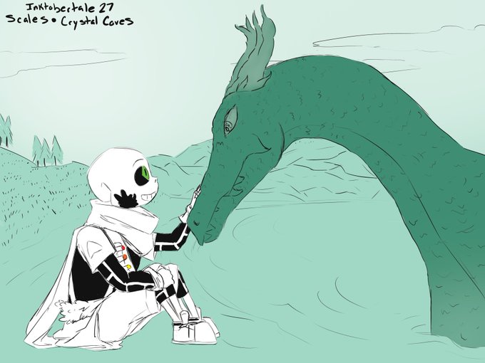 Inktobertale 27: Scales and Crystal Coves Dragons are good and I feel like Ink would agree #undertale #inktale #inktober #inktalesans #sans #dragon #digitalart