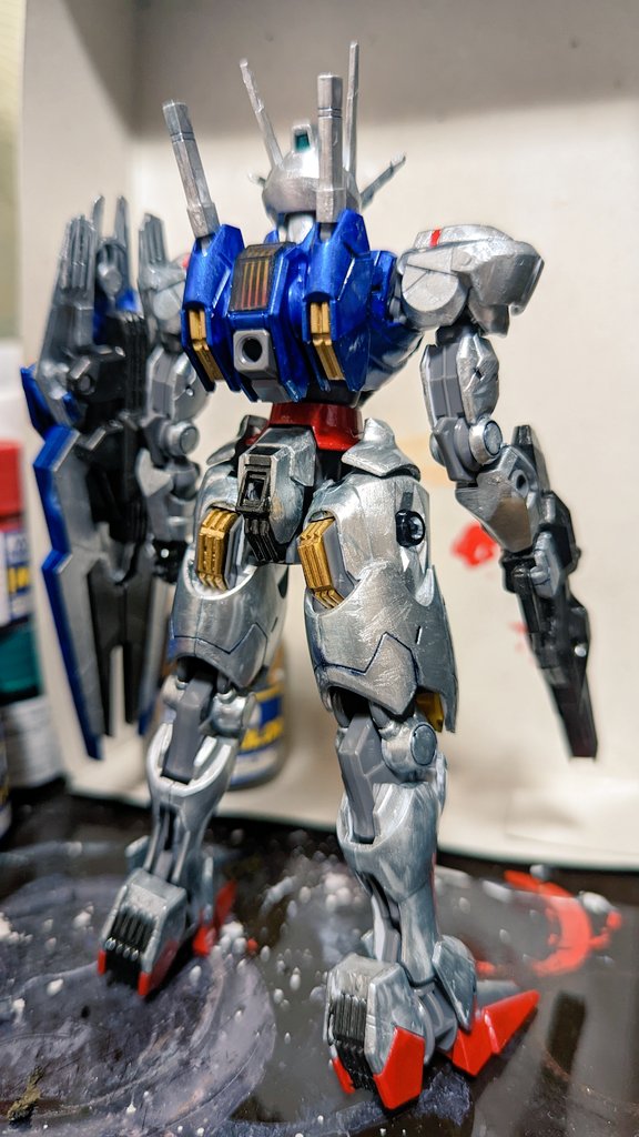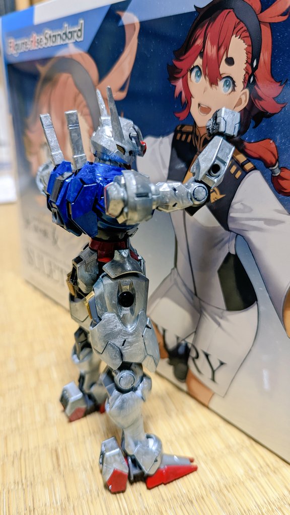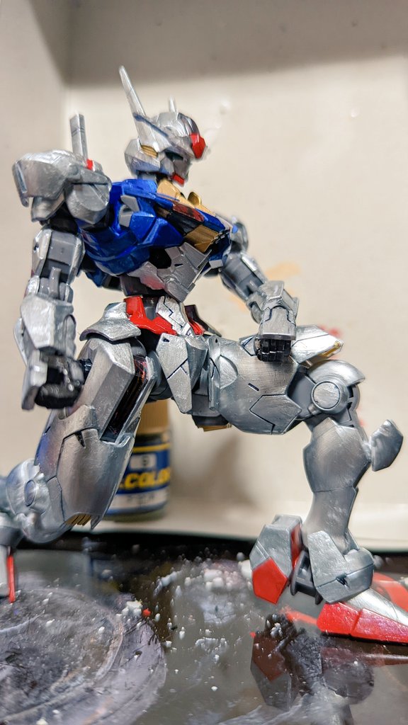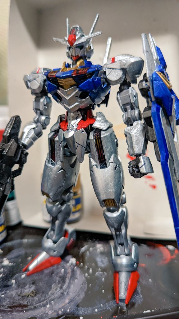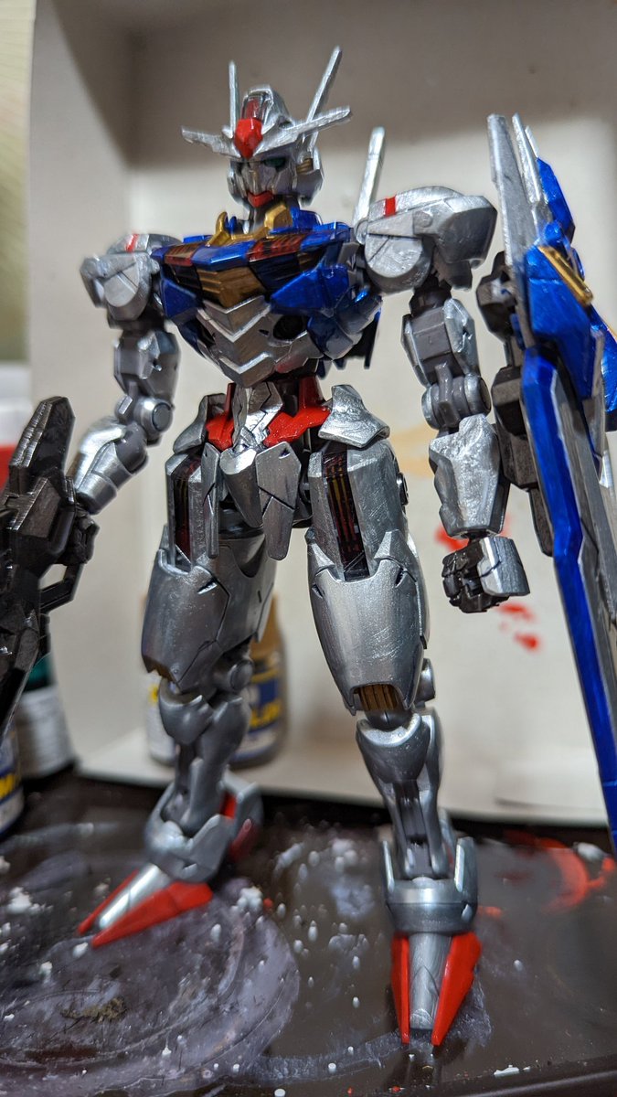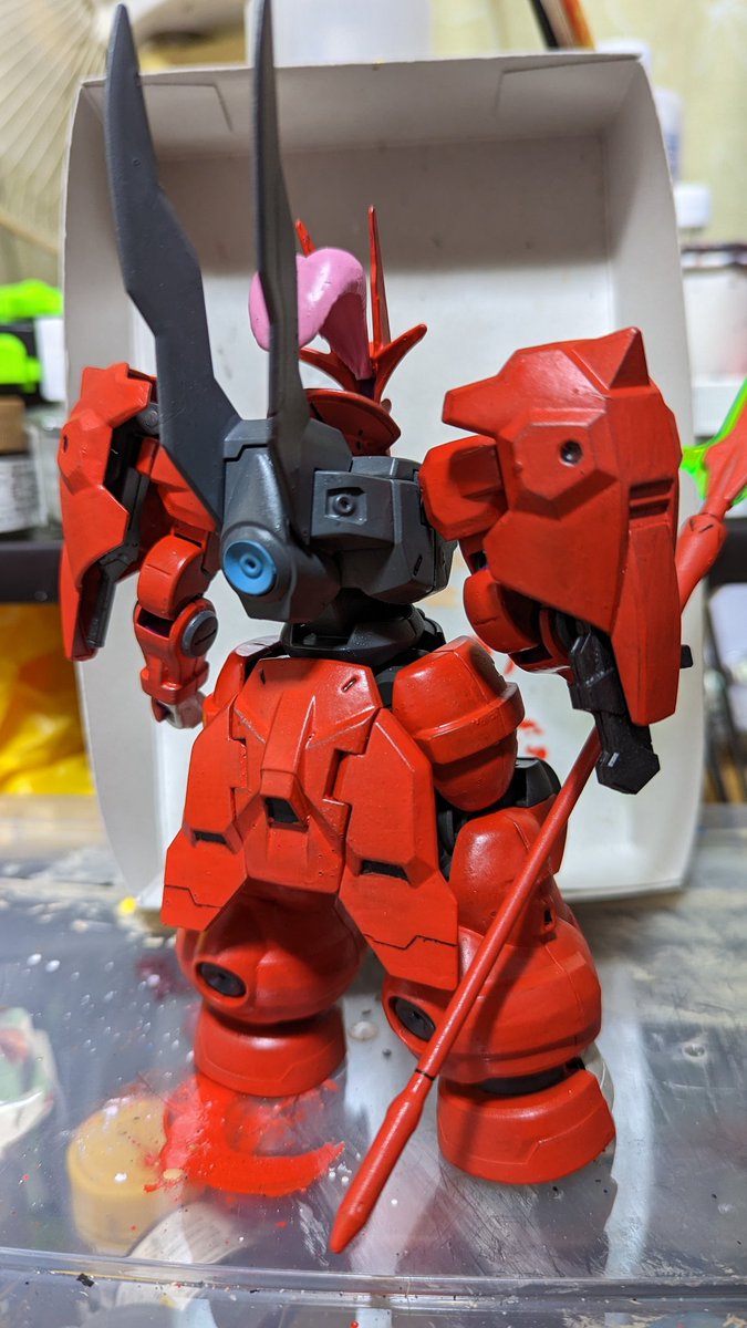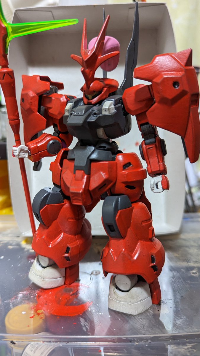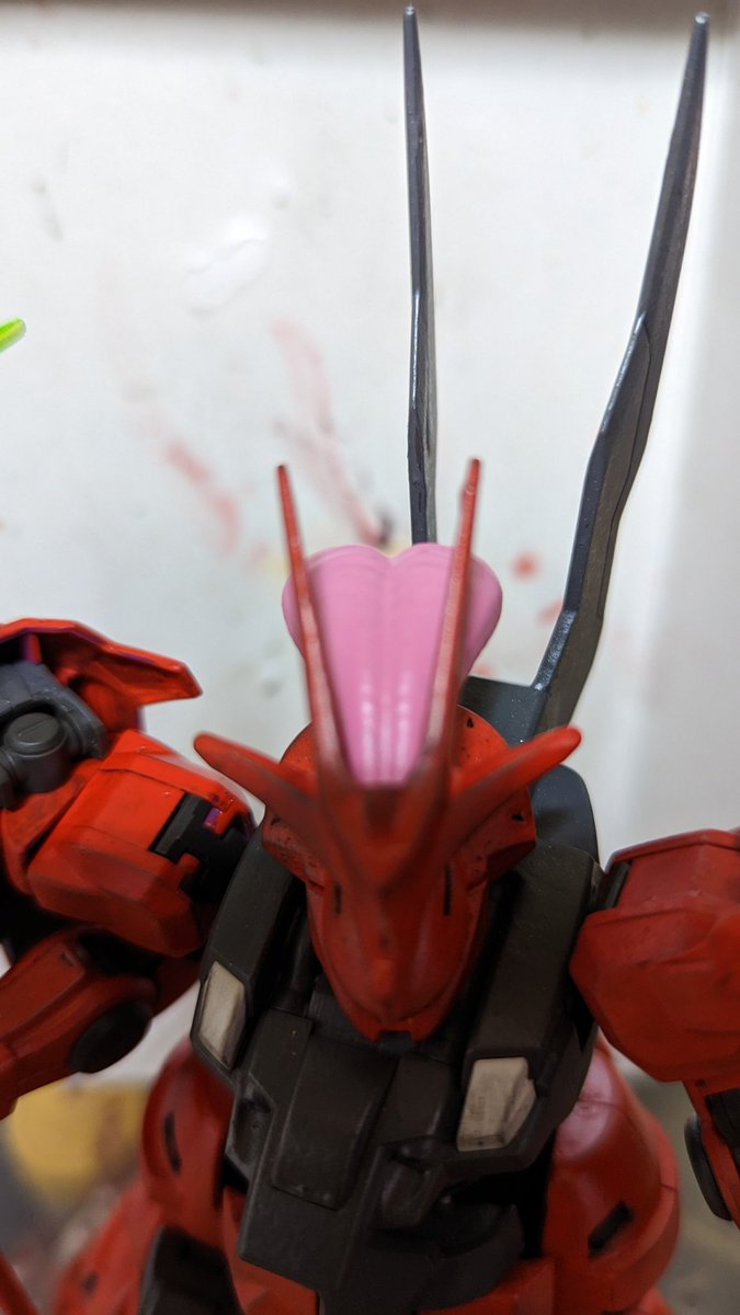 HGディランザグエル専用機ダリルバルデカラー完成しました ディランザにダリルバルデをイメージしたカラーにウェザリングを加えて作りました 羽毛の所のピンク色はグエル君の髪の色をイメージして塗装しました #ケイコクプラモコンペ #完成 #ガンプラ