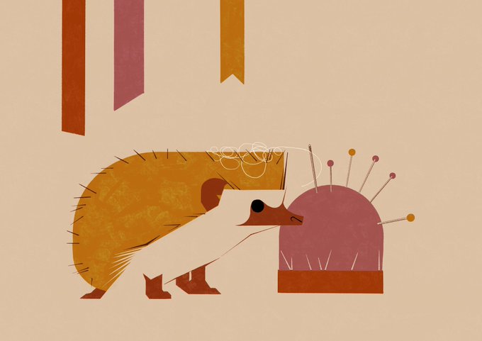 🦔 子供の頃お洋服屋さんのハリネズミの絵を描いてそれをフェルトマスコットにするなどしてました。(どうぶつの森の影響かな…笑) 同じモチーフを今描くとこう。 #illustration #イラスト
