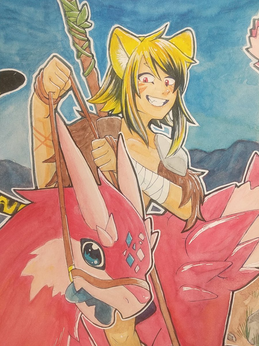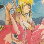 1 10 紙が死ぬほど曲がってるので顔だけですが 赤いドラゴンに乗って旅する虎の少年 #イラスト #創作 #透明水彩 23/02/07 22:37