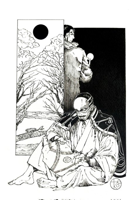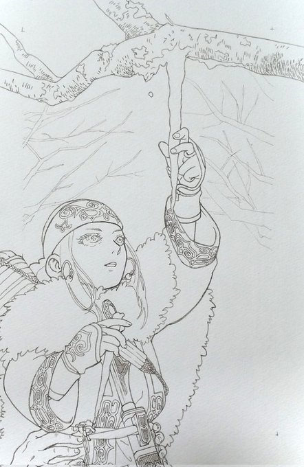 素敵なタグをお借りします!!! 過去絵ですが、線画と完成絵です コピックとアルコールマーカー、時々水彩ペンを使ってスケッチブックに描いてます!! アナログはいいぞ...(ボソッ) #金カムアナログイラスト部