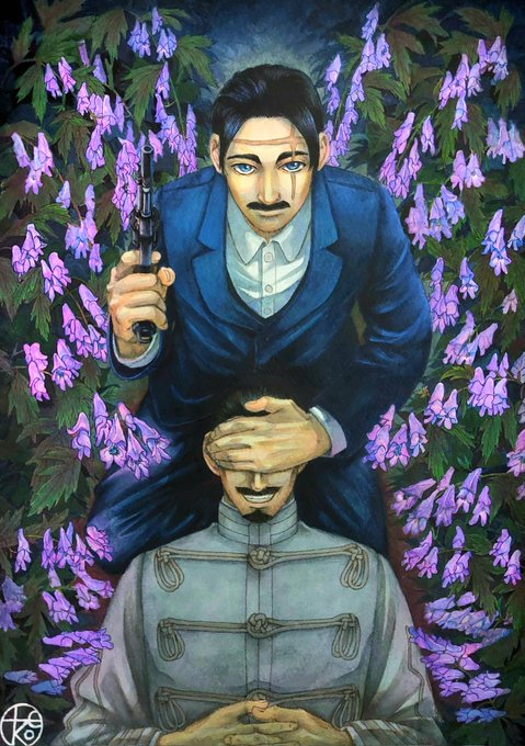 遅刻参加失礼します!!! お題「花とキャラ」 トリカブトの花言葉は「あなたは私に死を与えた」らしいので... コピック、絵墨 明、アルコールマーカー、水彩ペンを使いました #金カムアナログイラスト部