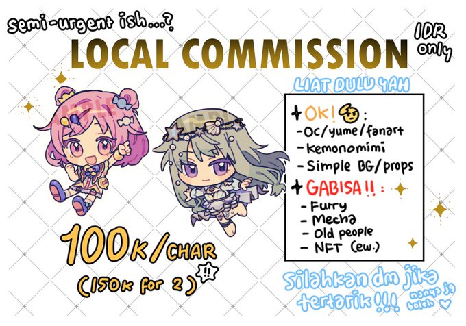 [RTs would be appreciated! 😳💕] HELLO.. I'm opening bust-up chibi commissions for 5 slots! The results will be like a mockup stickers style where you can add your own texts (samples below)! For more details, please check: telor-comms.carrd.co Thank you!