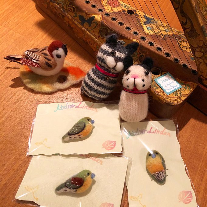 1 5 金属弦ハープ京都教室3日目、4件のレッスン終了。最終日の明日は3件。今日はアオバトブローチやフェルトのスズメ等をお買い求め頂きました。#金属弦ハープ教室 #アイリッシュハープ教室 #羊毛フェルト #アオバトブローチ 21/12/19 20:46