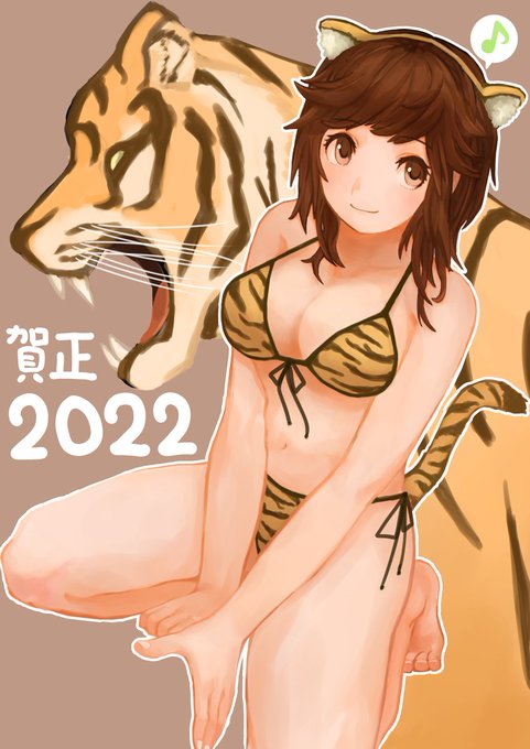 93 269 「トラ柄ビキニだ!」の梨穂子描きました! 若干遅れましたが今年もよろしくお願いします! #アマガミ 22/01/03 11:18