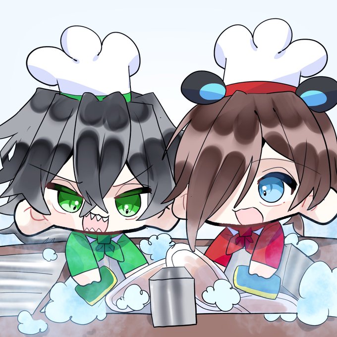 2人で皿洗い (見た目捏造有) #しろっぽ