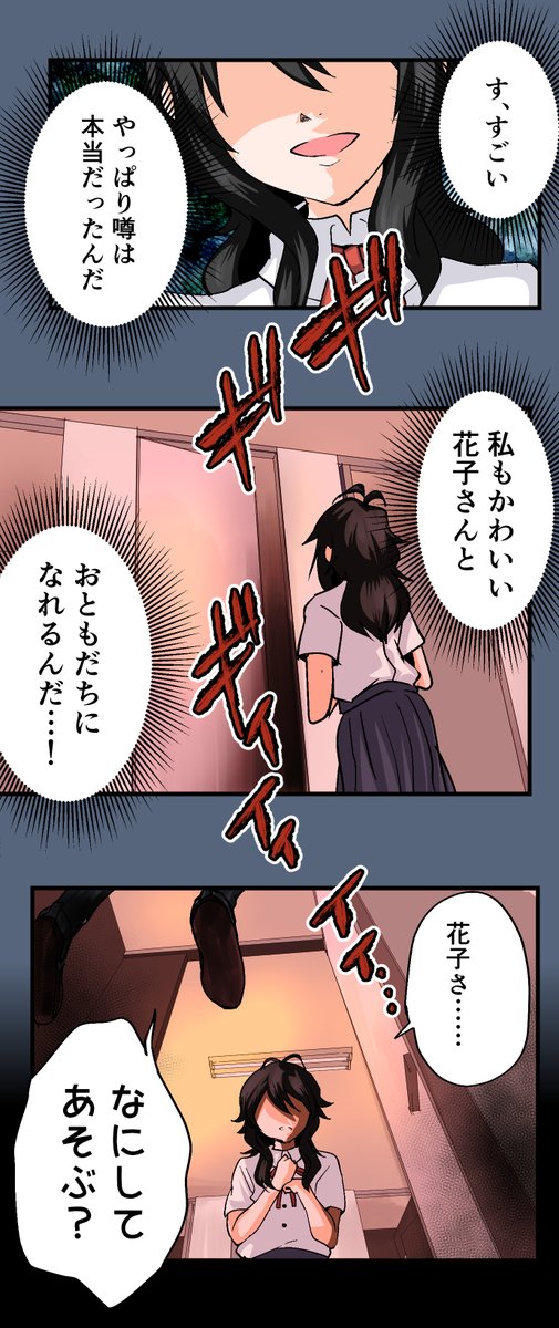 #肝潰しの夜 首吊り花子が本物の「花子さん」ならば、眼帯の花子ちゃんは何者?そして「花子さん」怪談の驚愕のシステムが明らかに! ▼第94夜 6番目の花子さん nico.ms/mg761143 #ニコニコ漫画