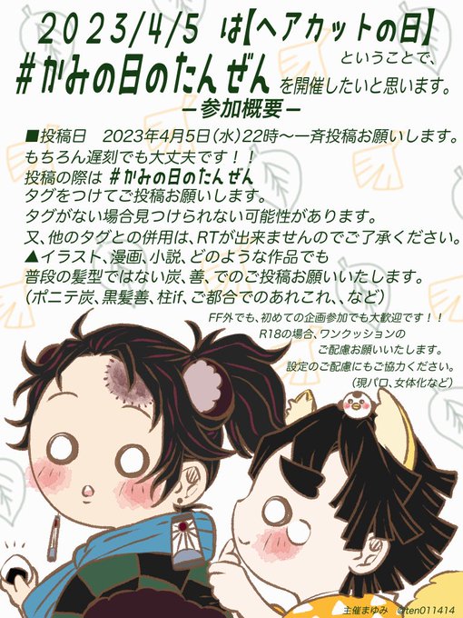 #かみの日のたんぜん 2023年4月5日に 🎴⚡️ちゃんの 新しい企画を開催いたします💚💛 色々な髪型(色)をした🎴⚡️ちゃんが みたい‼️読みたい‼️🤝✨✨ 詳しくは概要をご確認ください🙏 初めての企画です✂️✨ 沢山の方にご参加いただきたいので、 RTのご協力よろしくお願いします💕