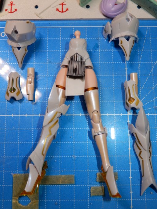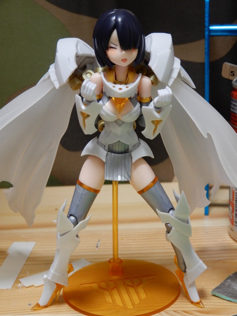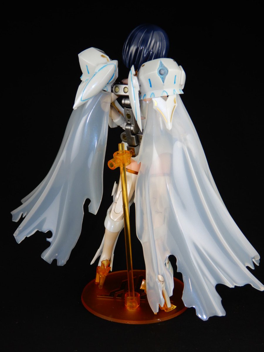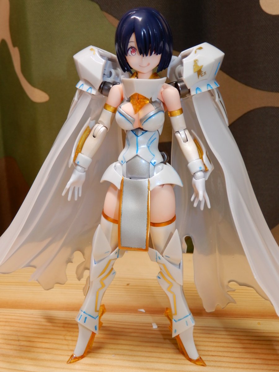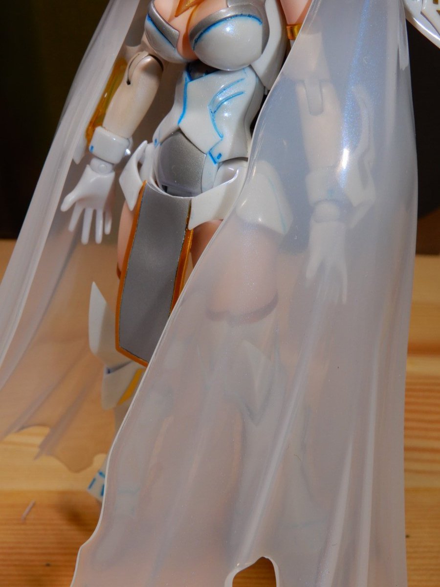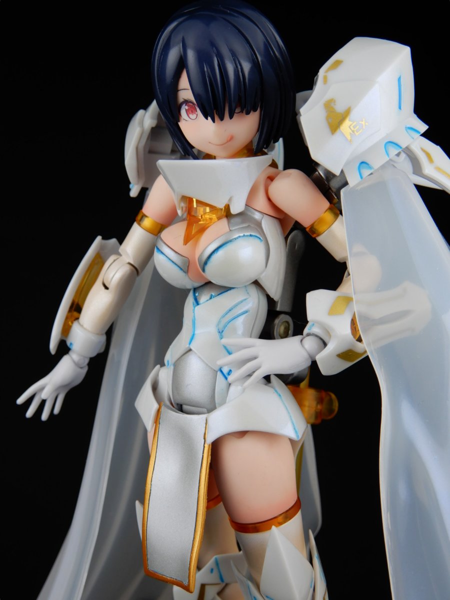 #今月作ったプラモ晒そうぜ #メガミデバイス エクスキューショナーブライド本体のみ完成。 武器はまだ作業中。 お気に入りは延長した前垂れと神ヤス10000番まで磨いて透けるマント。 腕と脚はストッキング塗装に挑戦したけどうまくいかんかった... パール塗装してるけど画像だと全然見えないね…