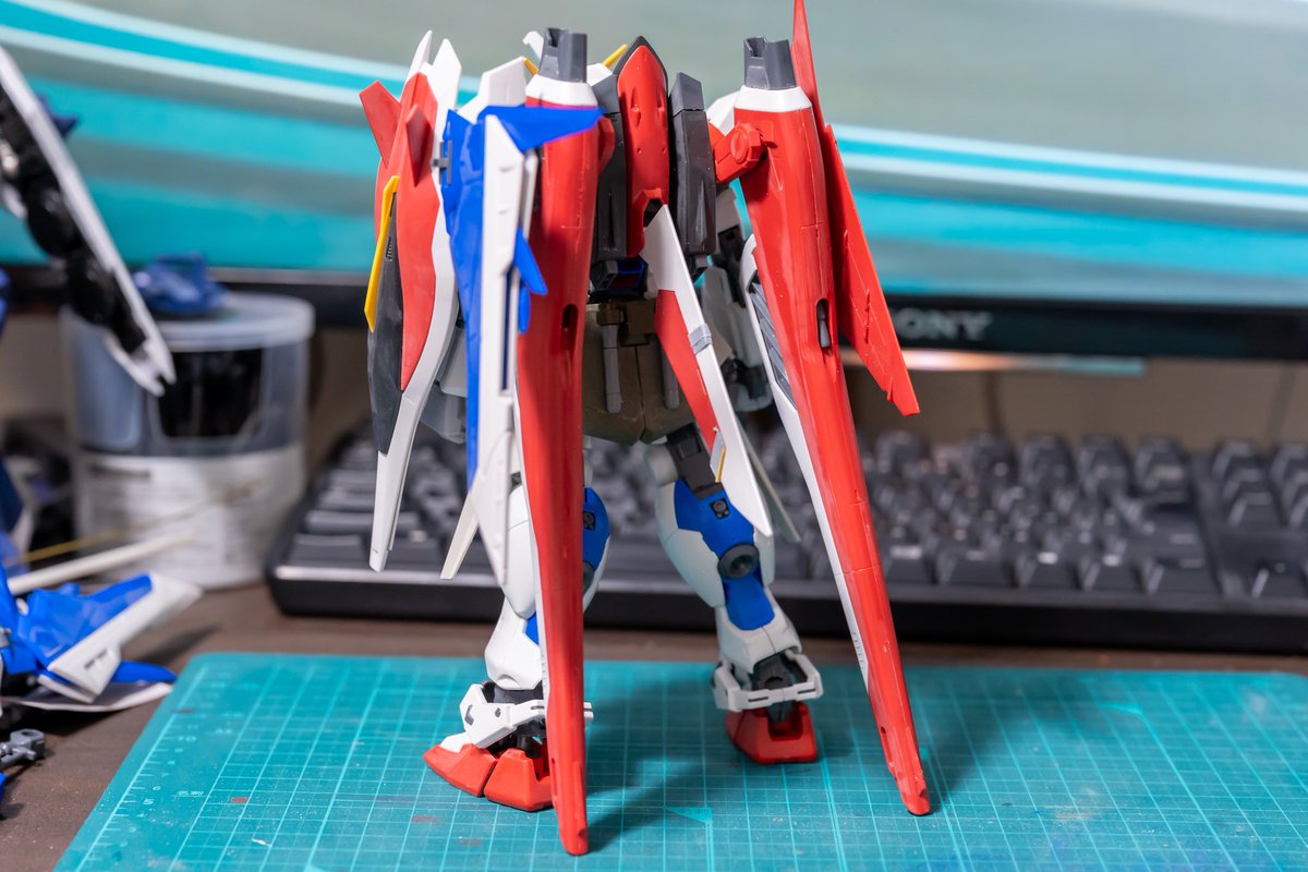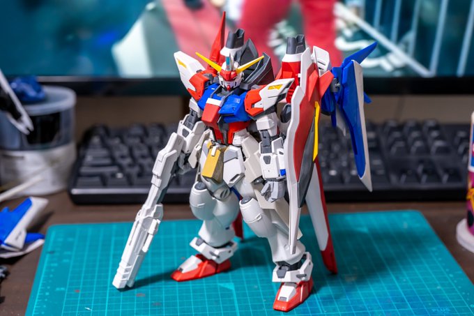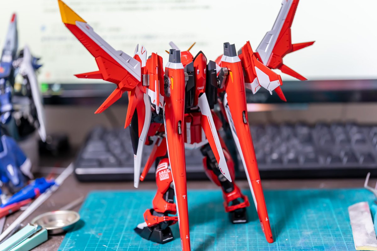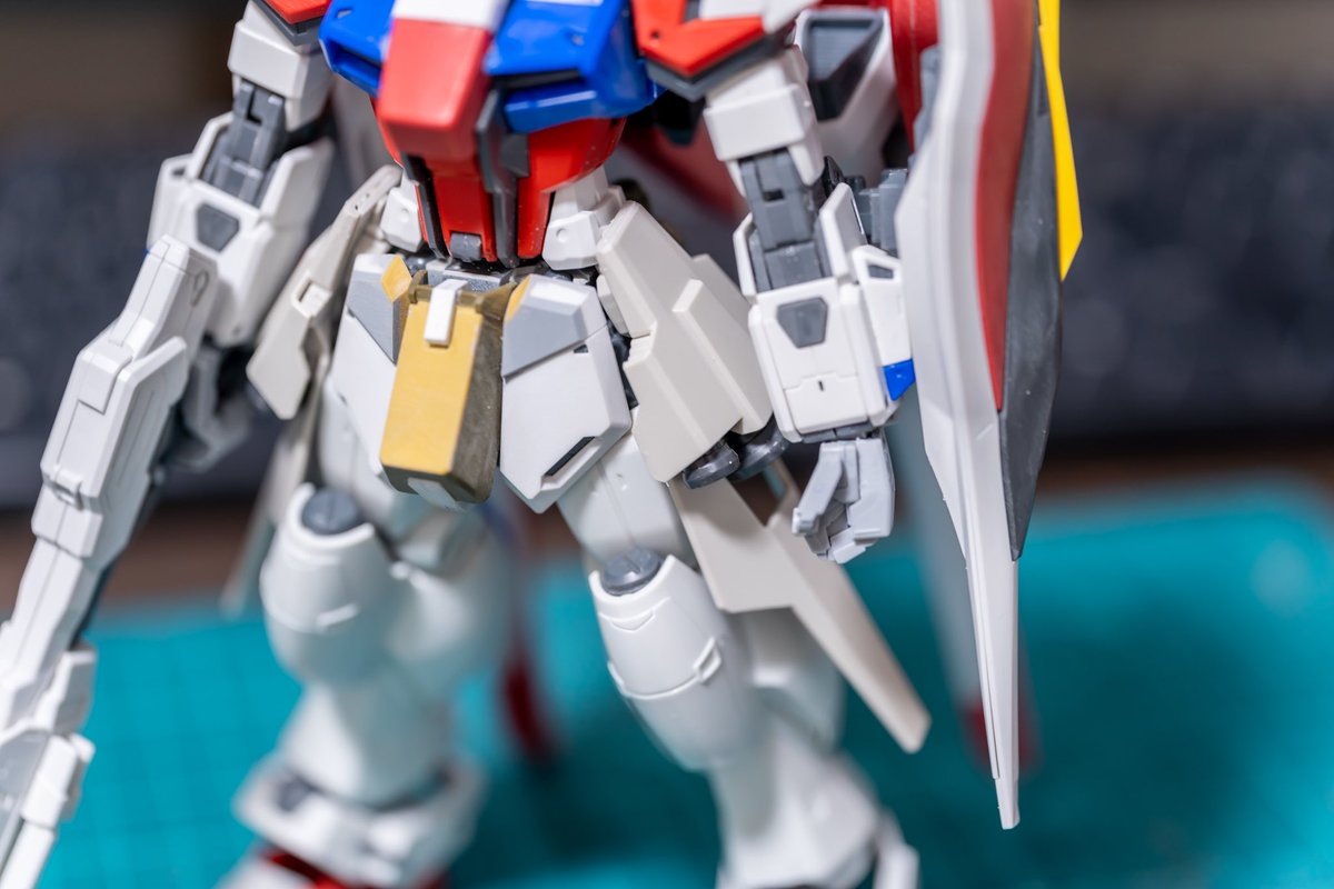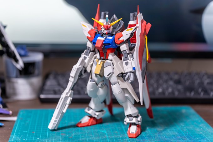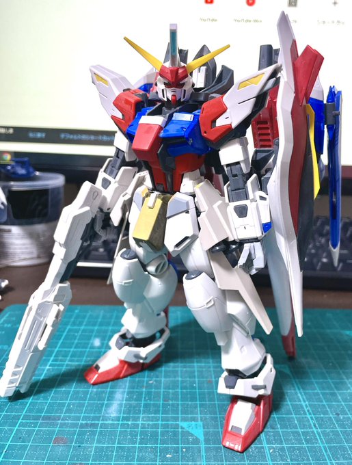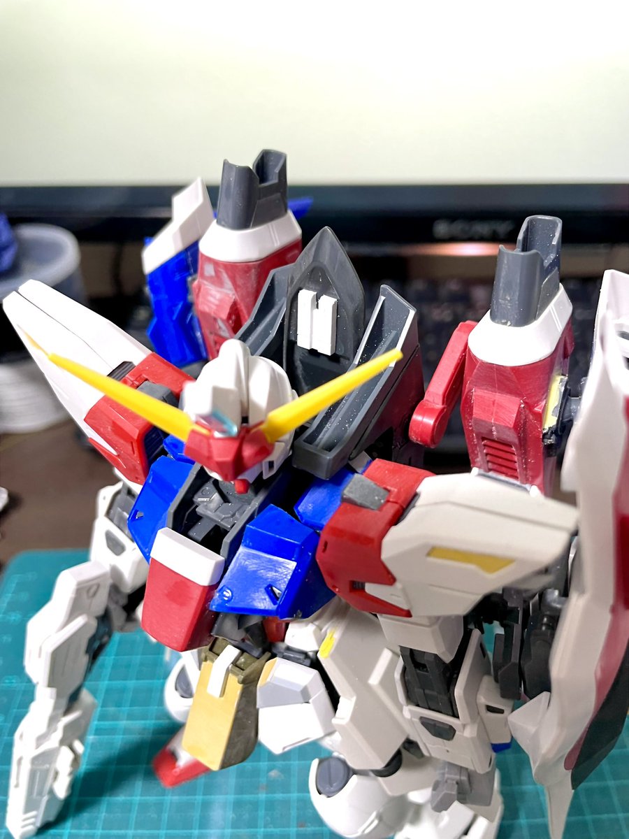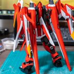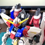 #お手軽だろうと2つ以上が混ざればミキシングだよ プロトストライクはまじでお手軽ミキシングでした。 作成中のレジェンドはわかりにくいけど、腹・腰、太もも、足首がMGストフリになってます。 #ガンプラ