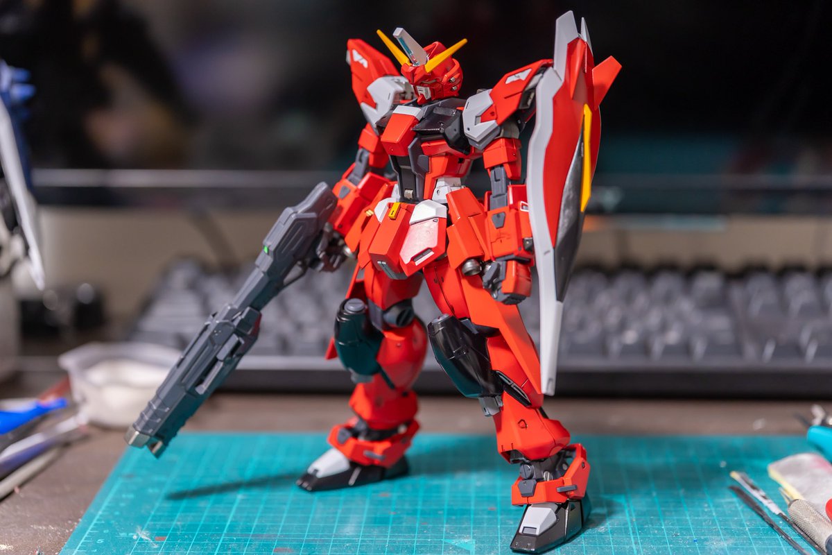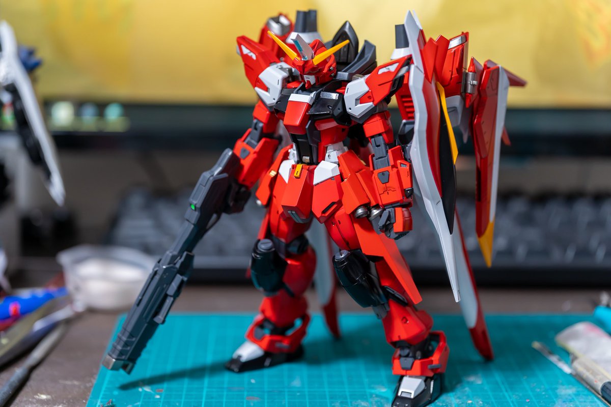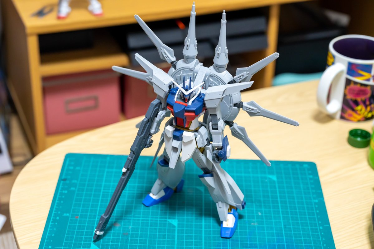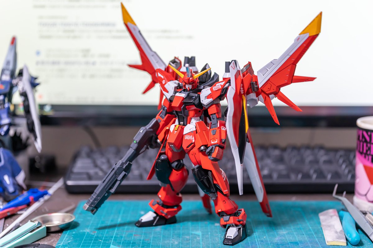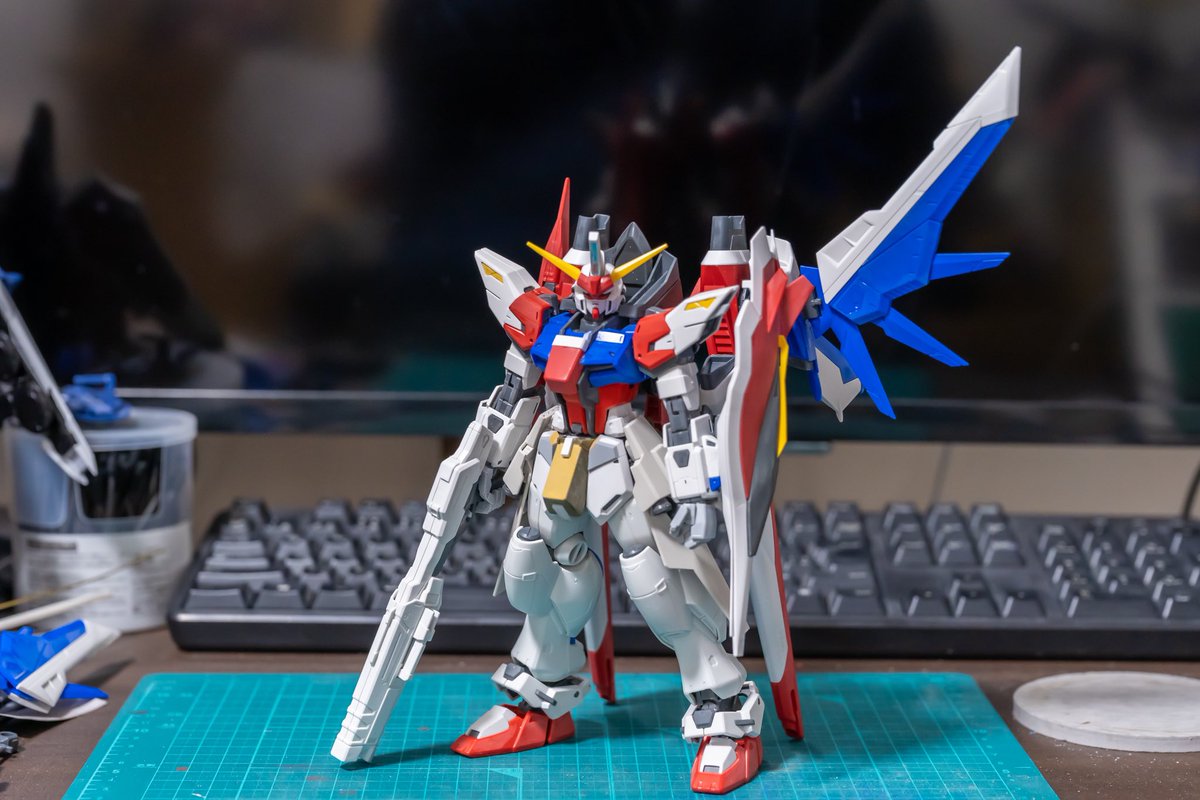 #お手軽だろうと2つ以上が混ざればミキシングだよ プロトストライクはまじでお手軽ミキシングでした。 作成中のレジェンドはわかりにくいけど、腹・腰、太もも、足首がMGストフリになってます。 #ガンプラ