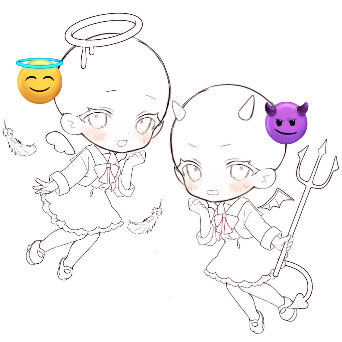 量産絵の天使と悪魔のサンプルも作りたいんですけどキャラデザ貸してくれるフォロワーさんいますか、、!!天使か悪魔を選んでリプ貰えたら嬉しいです