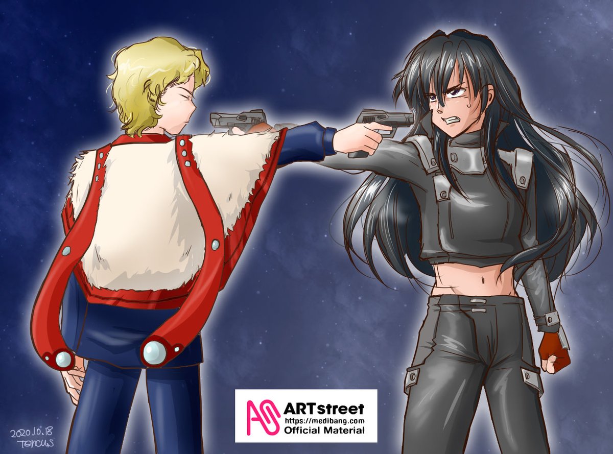 # 2020年自分が選ぶ今年の4枚 二次創作編 1枚目→【公式】トレスde描こう!-第10弾-/Trace&Draw【Official】 no.10 - ART street | イラスト - アートストリート(ART street) by MediBang medibang.com/picture/2d1910… #ARTstreet #MediBang 1枚目、線画トレス&カナードが旧衣装ですがお気に入りなので