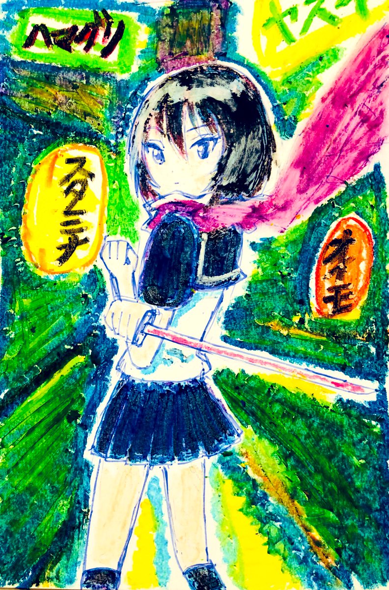 ダイソーのオイルクレヨン画 #ニンジャスレイヤー ヤモト・コキ=サン #ウキヨエ