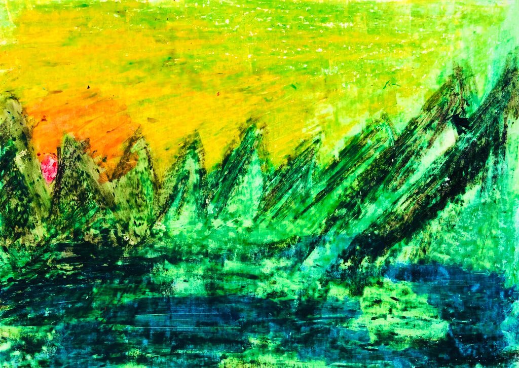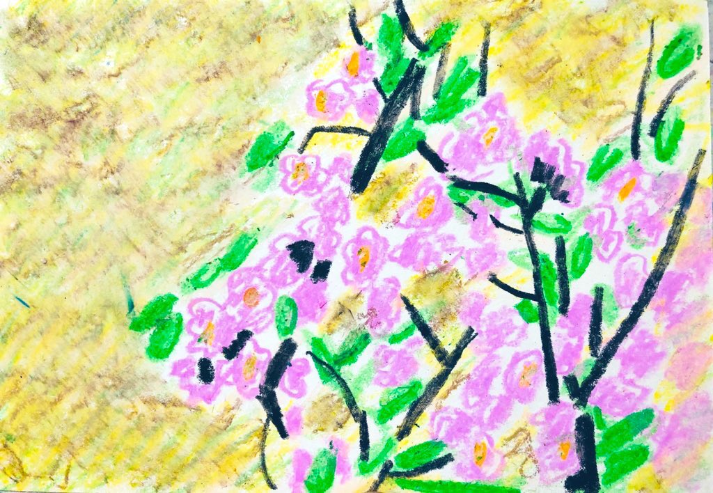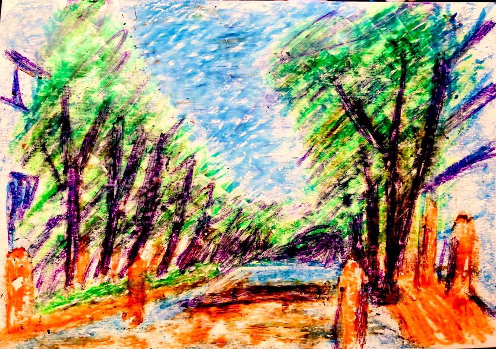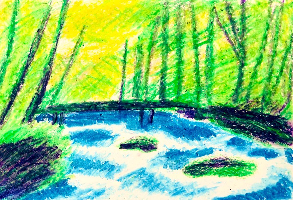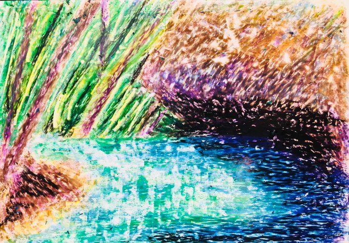 #今年も残りわずかなので今年一番伸びた絵を貼る見た絵描きさんも強制でやる 100均クレヨン画 森林の奥地にいる、大蛇みたいな だいあぱん。 だいじゃぱん。 #だいあぱん