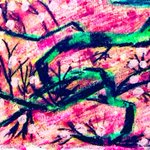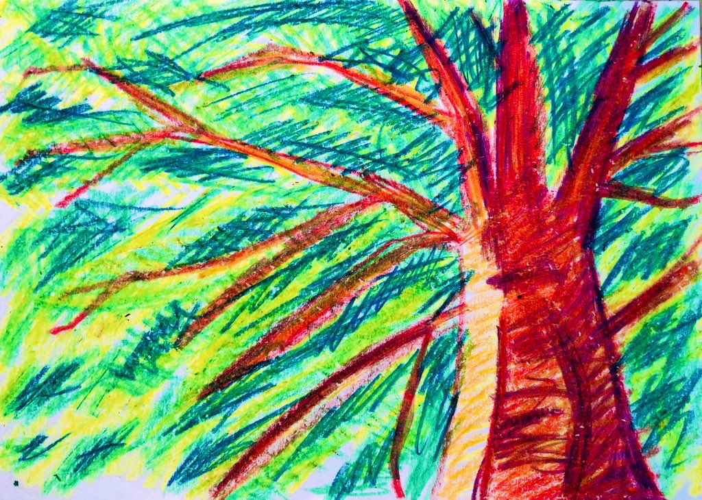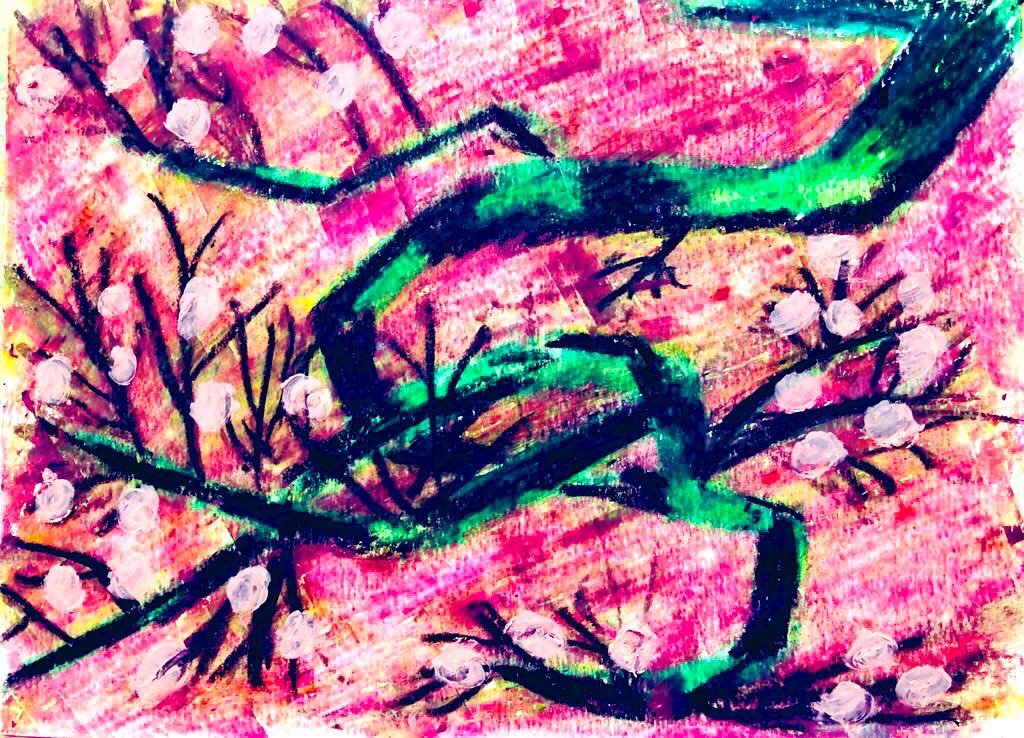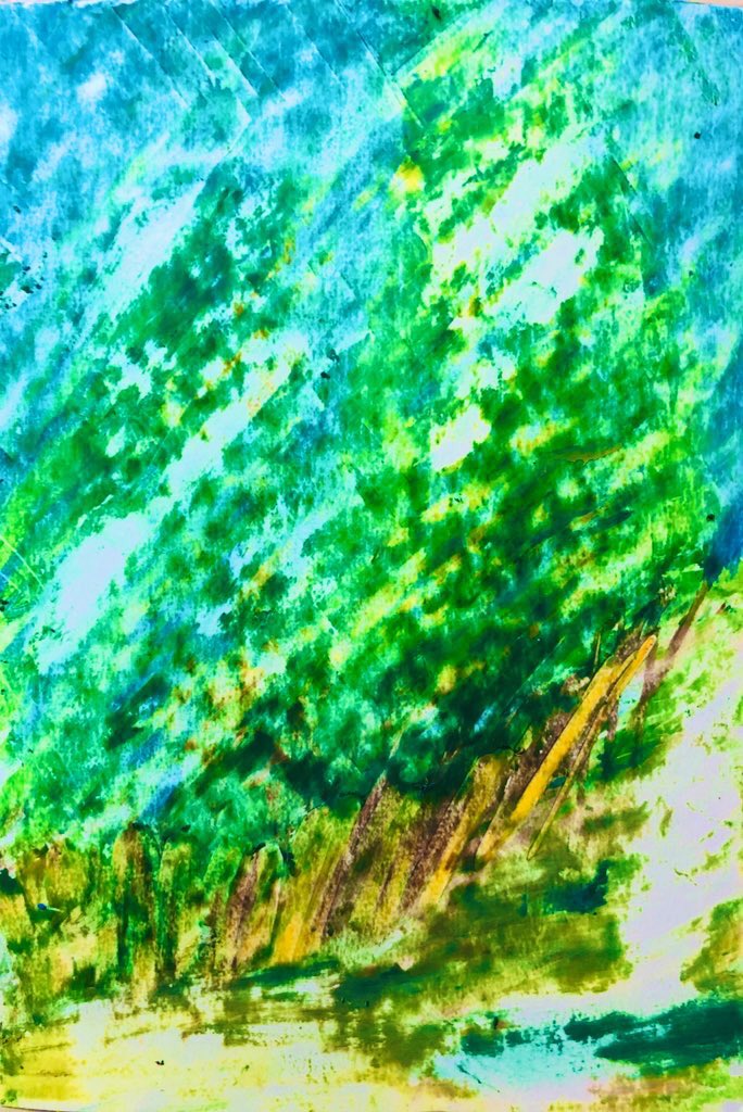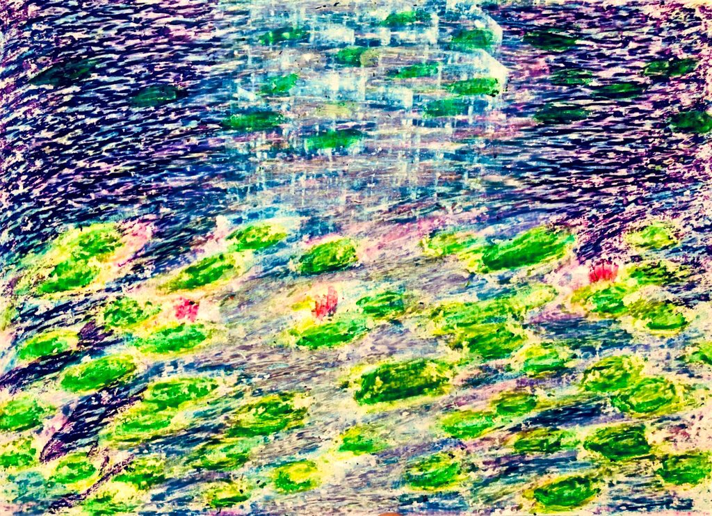#今年も残りわずかなので今年一番伸びた絵を貼る見た絵描きさんも強制でやる 100均クレヨン画 森林の奥地にいる、大蛇みたいな だいあぱん。 だいじゃぱん。 #だいあぱん