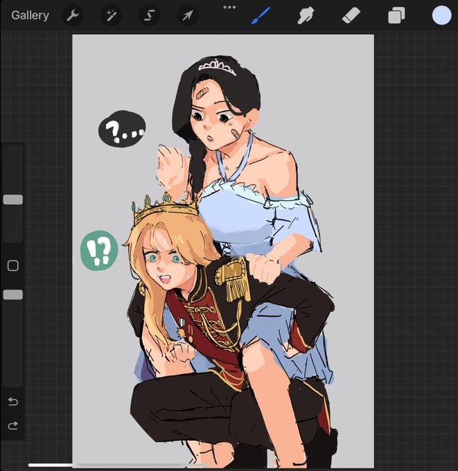 👸🏼 Royalty au 👸🏻 “Princess, are you okay?! Let me carry you!” “I’m fine it’s just a—“ “…!?” “Uhh…can you even carry me?” #LOONA #loonaau #loonafanart #OliviaHye #GoWon