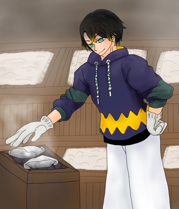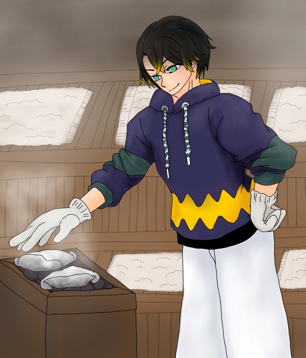 3 22 #伯物館 今日はサツマイモの日らしいので、地獄銭湯のサウナ室にあるサウナストーンで焼き芋を始めるガルさんを描きました。 22/10/13 00:31