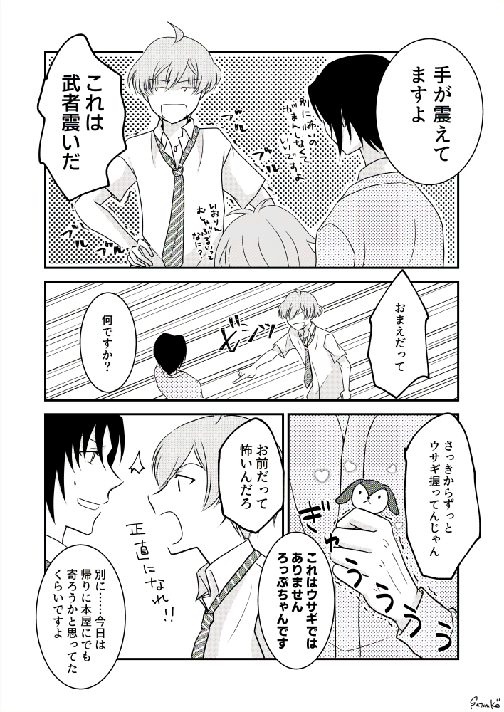 昨日のトプステの無配ペーパーに描いてたアンズくんとフジさんの漫画です。※イベント始まる前に描いてたものです。