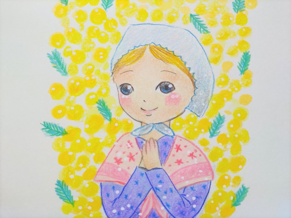 ミモザの日に、ミモザ祭りの女の子を描いてみた youtu.be/oAvP1gmnKkw 色鉛筆とアルコールマーカーで民族衣装の女の子を描きましたー✨メイキング動画を投稿したのでよろしくお願いします。 #ミモザの日