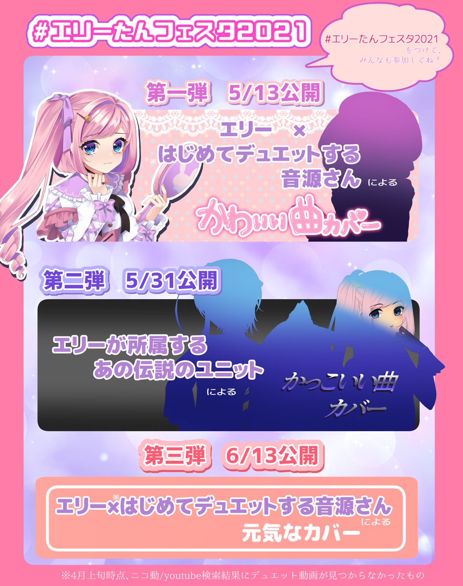 【告知】 5/13㈭は仄歌エリーのお誕生日です。今年は私の勝手な都合により、1ヵ月かけてお祝いします!皆さんも是非 #エリーたんフェスタ2021 をつけて、一緒にお祝いしてください🙇♀️💖よろしくお願いいたします!