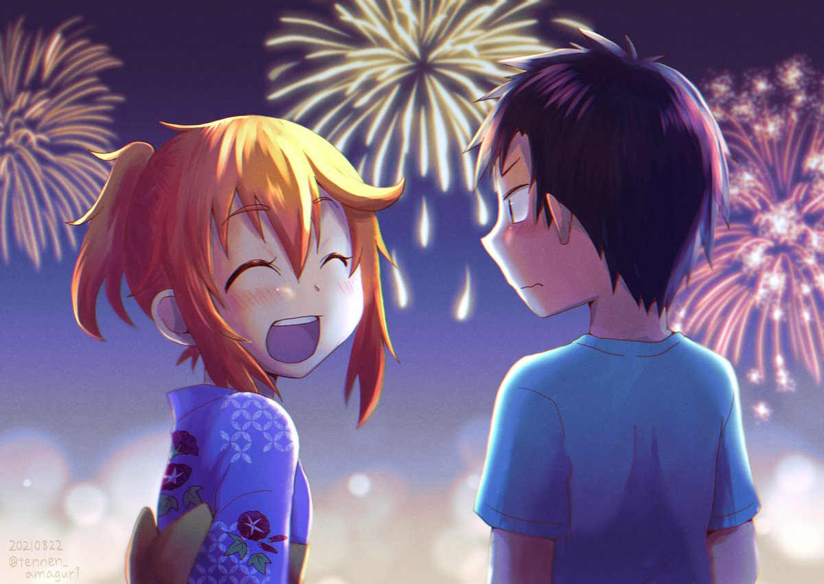 #破壊神マグちゃん混沌芸術祭 過去作からお気に入りを。 夏休みでも出店や海の家の手伝いをする錬…少しくらい流々ちゃんと二人になれる時間があればいいな~と思って。 錬の恋路をずっと応援していたので、最終話で流々ちゃんの夢と一緒に錬の夢も叶ったのかなあって嬉しくなりました!