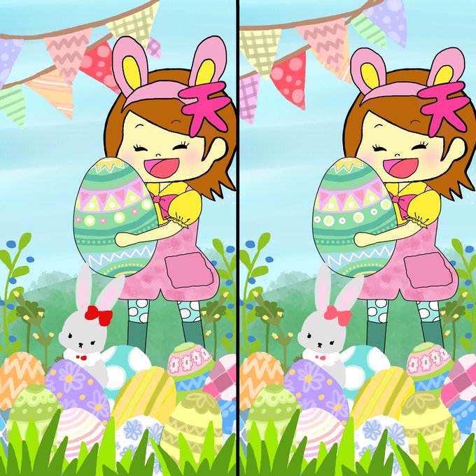 5個の間違い探しに挑戦してみてね! 答え合わせは次回の投稿です。 #イースター #イースターエッグ #그림 #illustration #イラスト #イラスト好きな人と繋がりたい #絵描きさんと繋がりたい #ゆるいイラスト