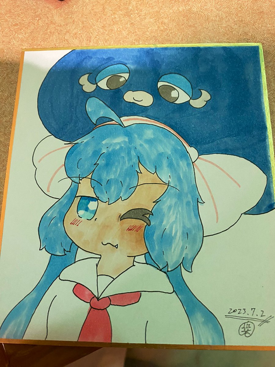 2 7 生まれて初めて色紙描いたよ… アナログむずい…手ぶれ補正ください… 23/07/02 00:36
