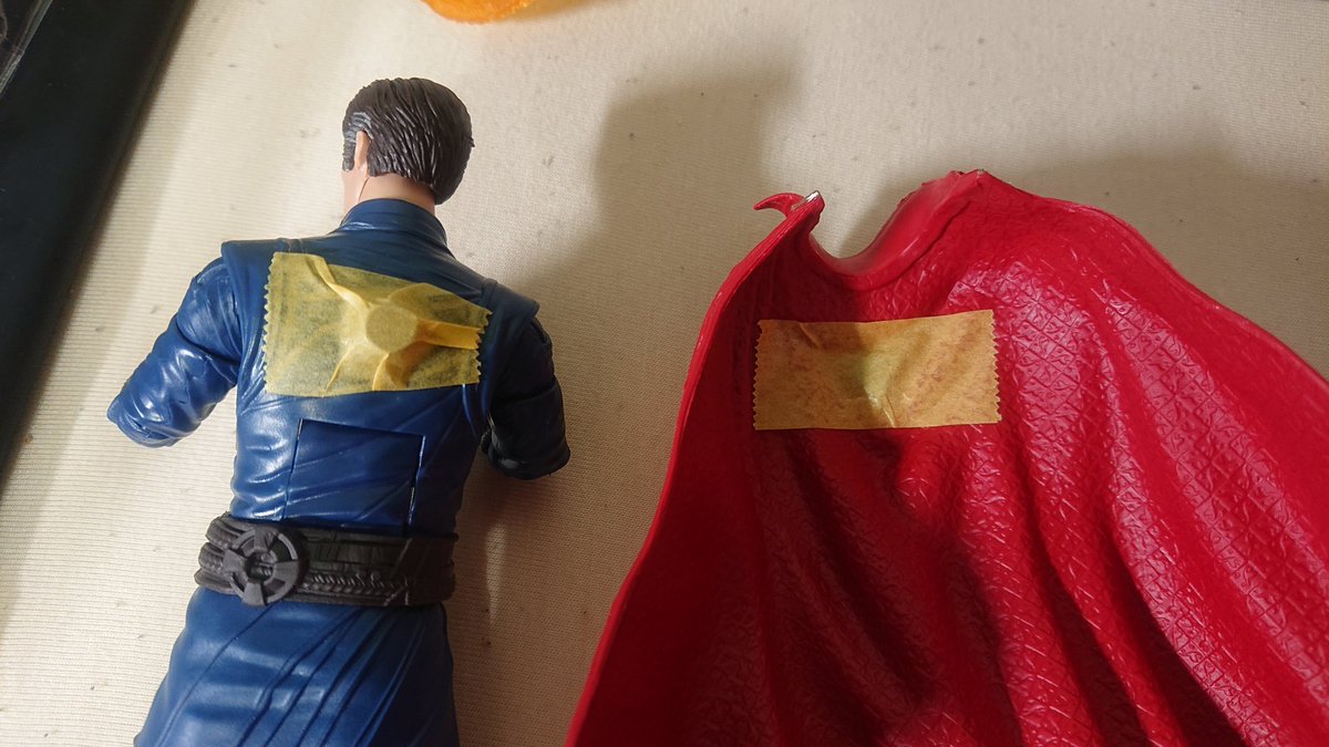 ちなみにマントに関してはネオジム磁石を使うことで よほど変なポーズを取らせなければ落ちないようにすることも可能 とりあえずマステで仮止めしたが なんなら埋め込んで色でも塗っちゃった方が違和感ないかも? #マーベルレジェンド #オモ写