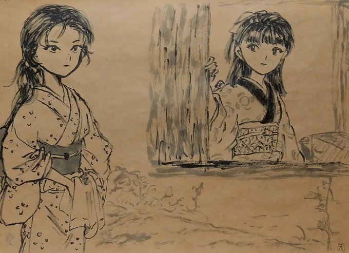 左から創作キャラの少女、早ヱ(元・大名の御姫様)と勝美(米屋の娘)です。 勝美『気に入らない・・・』 早ヱ『・・・。』 画像タップ推奨。 #らくがき #イラスト #一次創作 #春の創作クラスタフォロー祭り #絵描きさんと繋がりたい #天星画