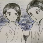 半カラー絵。創作キャラの少年、右からユセとカタヒラです。 背景の海はブルーのペンでザカザカ塗り。 タップ推奨。 #らくがき #イラスト #一次創作 #春の創作クラスタフォロー祭り #絵描きさんと繋がりたい #芸術の輪 #天星画