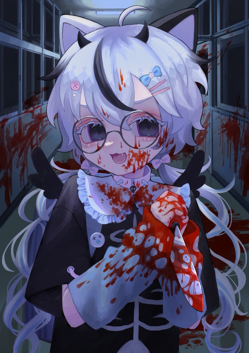 // TW: blood art !! " why are you so scared !! it's just strawberry jam!! wanna have fun?! " don't worry... mishie wouldn't do anything bad!! not even when turned to demon side!!! #mishie_art 🎈☁️ ✎ : nelta_rene