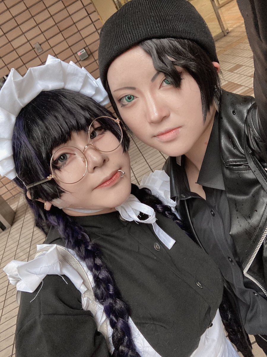 ⚠︎ピアス ついたー。ロベルタさんと一緒に赤井さんでいます( ˇωˇ ) #道頓堀コスプレ祭 #涼ででコス
