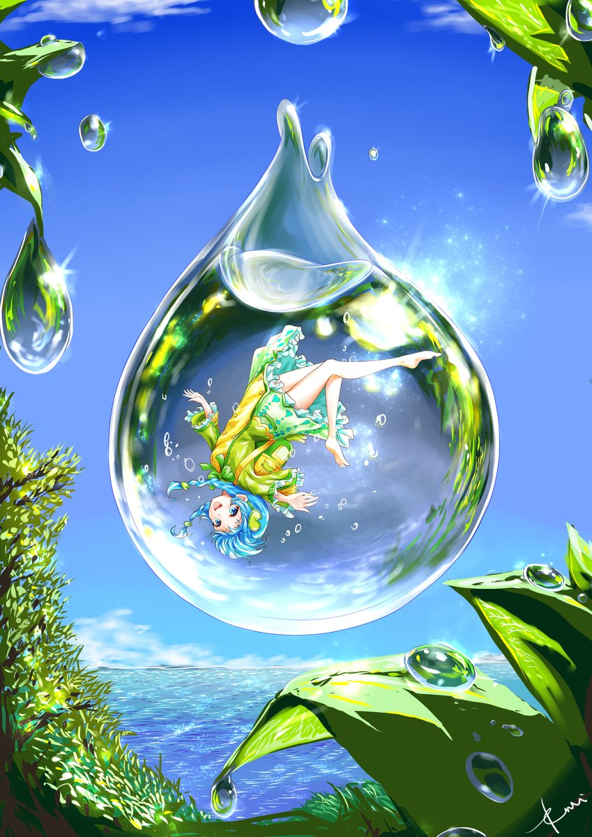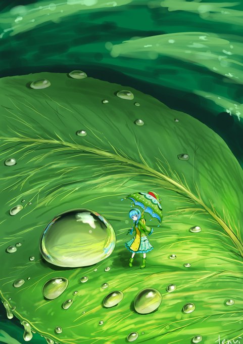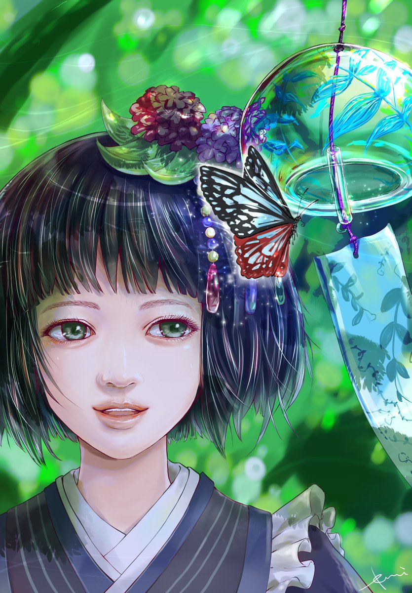 6 24 #今月描いた絵を晒そう 偶然なのか無意識に涼しさを求めてか、緑と青を中心にした色合いになりました🎐🌊 23/07/30 16:55