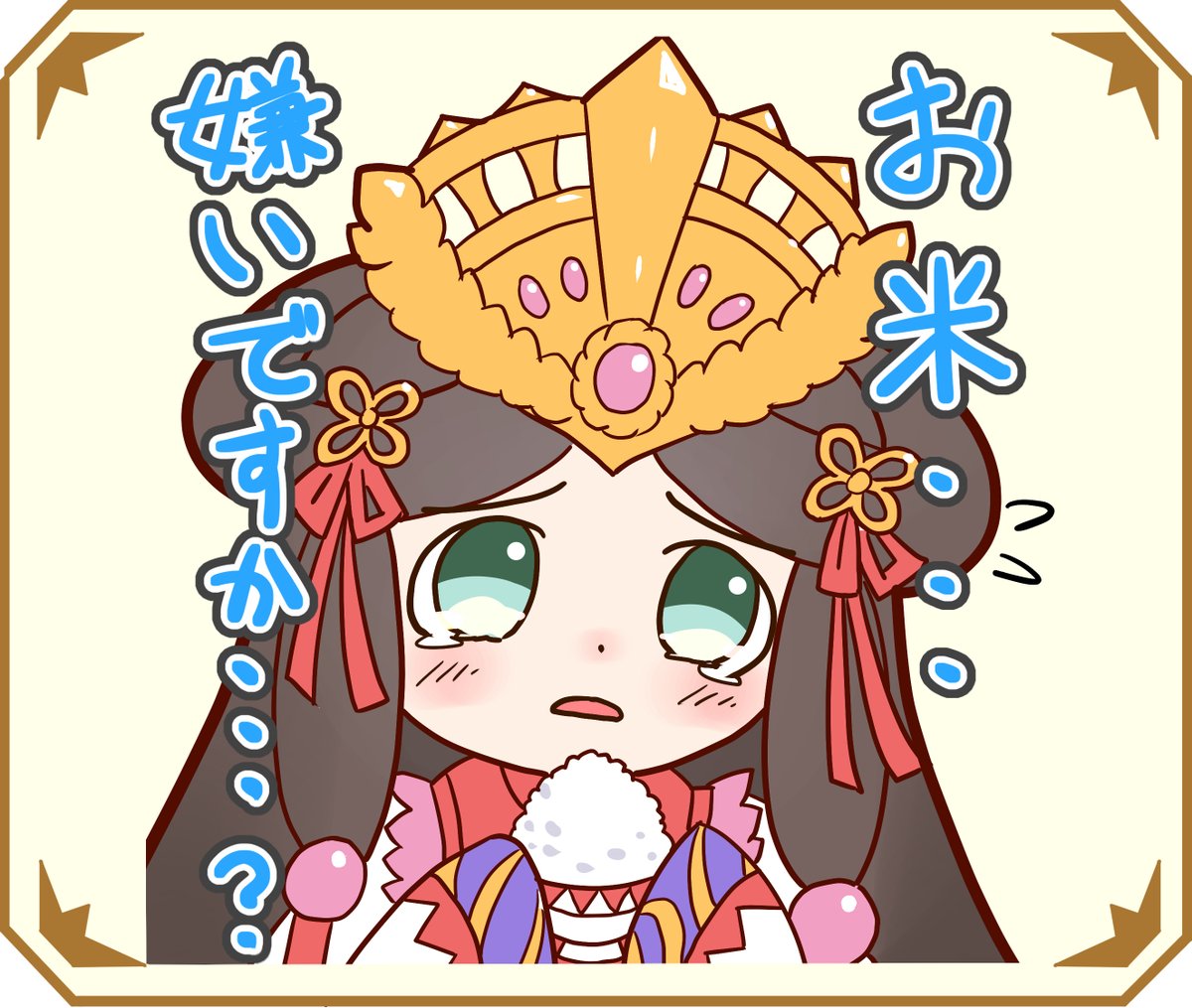 何年か前に描いたおこめさんスタンプ(1枚め)を発見して懐かしくなって、3日に渡って描いてみました~ 今年のエイプリルフールでまさかの主役を張るという快挙を成し遂げた彼女の名はマイ・ヒカリネといいます。白飯プロジェクトのメインヒロインです。