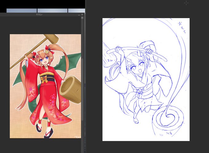 1 11 去年描いたテトラにお餅ついてもらおうと描いてたんですけど、特徴全部隠れて誰だか分からなくなっちゃう諦め🫠 ラフの時点では良い構図だと思ったんですけど見通しが甘かった~_(┐「ε`、)_ おやすみなさい~🌙✨ 23/01/03 00:01