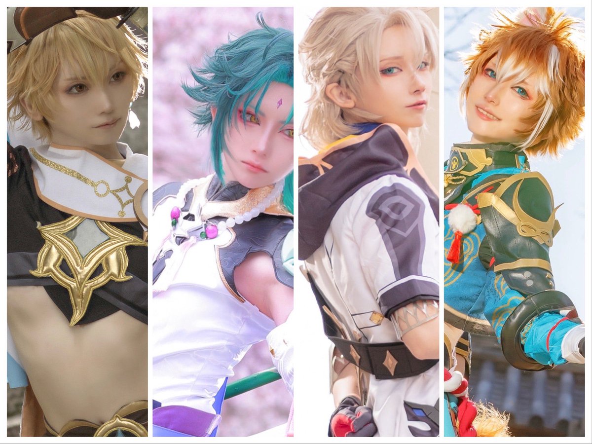 私のコスしてる原神男子これで5人なんだけど、未だに元素反応起きないよ🍃🍃🪨🪨🌱草が入ってきたところで拡散すらできない🙄 ※空君は風固定派🍃 twitter.com/tenx_mkz/statu…