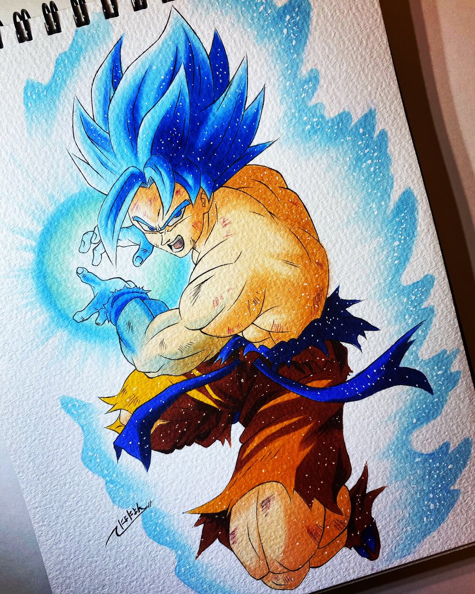できました! 今回はベタベタのアニメ塗りです #ドラゴンボール超 #孫悟空 #超サイヤ人ゴッド #コピックイラスト #模写