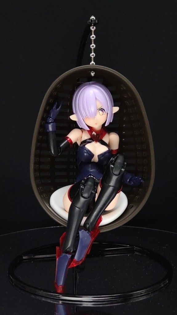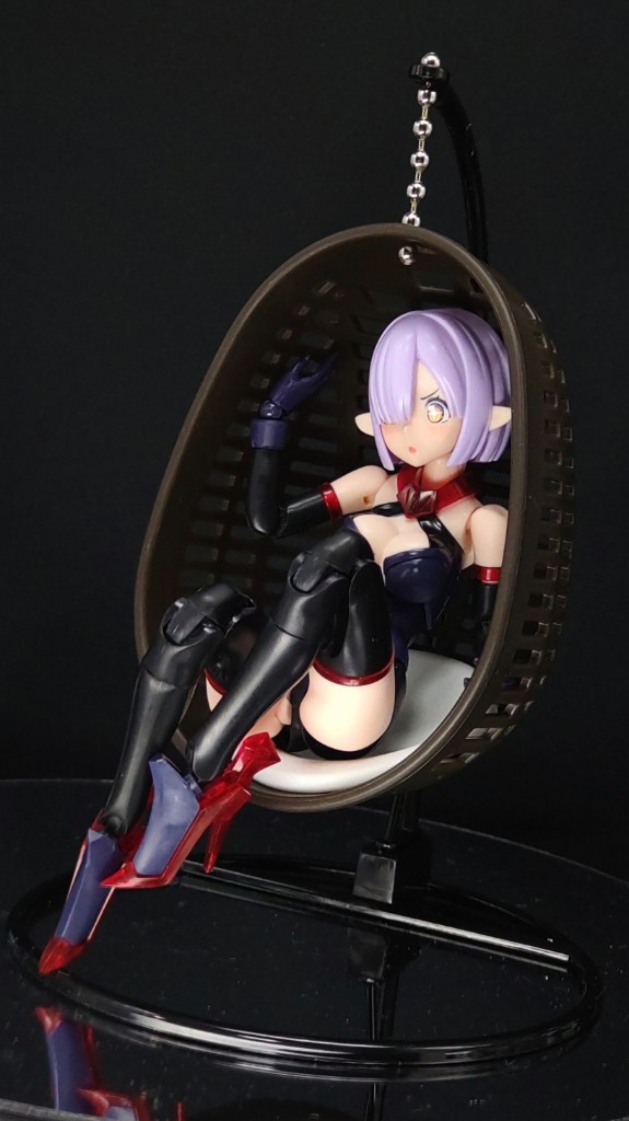 セリアで見つけたミニチュアなハンギングチェア。 エルフ耳なエクスキューショナーちゃんに座ってもらいました☺️ #メガミデバイス