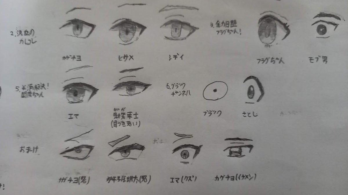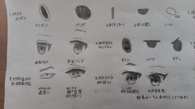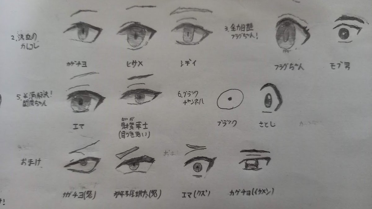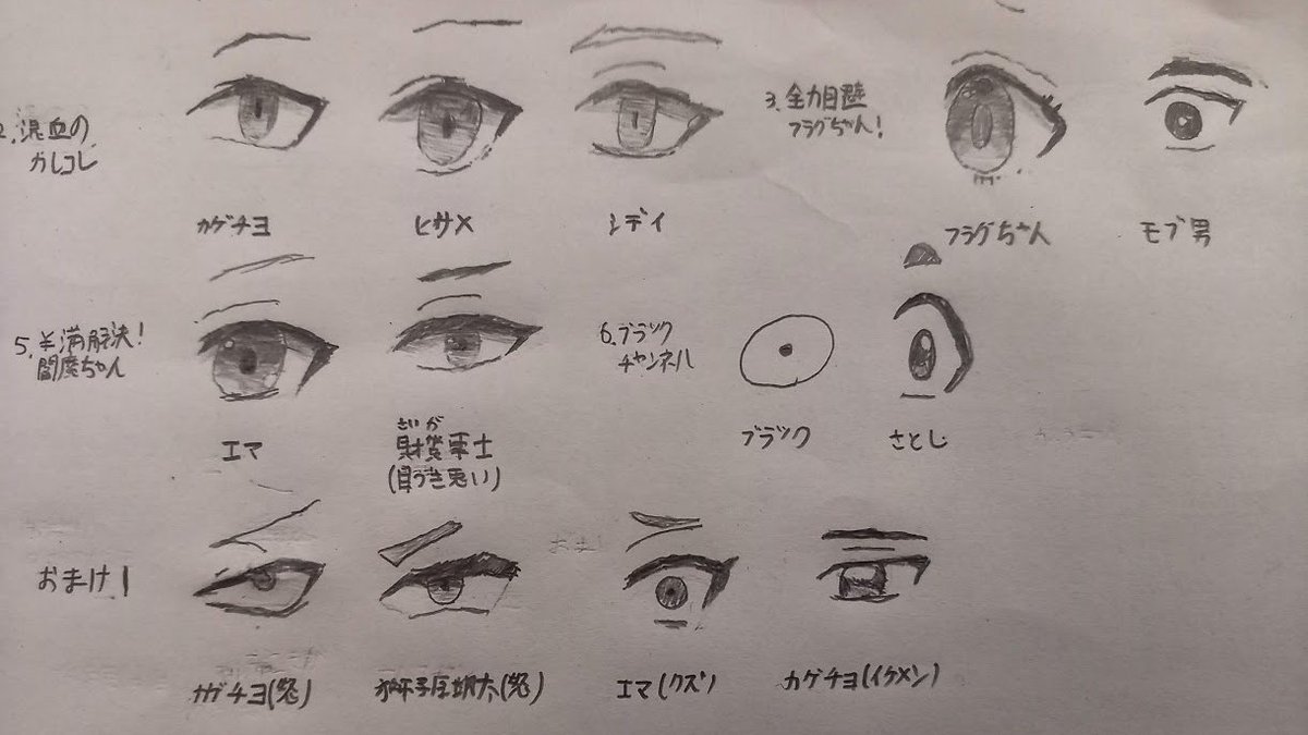 人気YouTubeアニメ 各キャラクターの「目」 白黒ですが、書いてみました! #テイペン #カレコレ #フラグちゃん #ヤルミナ #エマエマ #ブラックチャンネル #ヤク目 #女子力高めな獅子原くん